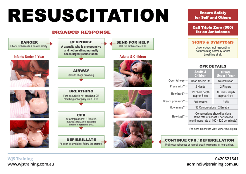Download the Resuscitation Chart for free — a handy reminder of what to do in an emergency.
